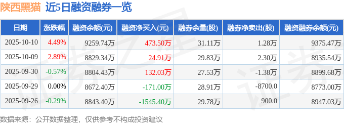 证券之星消息,截至2025年10月10日收盘,陕西黑猫(601015)报收于3.72元,上涨4.49%,换手率3.45%,成交量70.57万手,成交额2.63亿元。