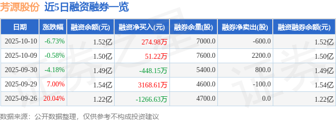 证券之星消息,截至2025年10月10日收盘,芳源股份(688148)报收于6.38元,下跌6.73%,换手率7.36%,成交量37.57万手,成交额2.43亿元。