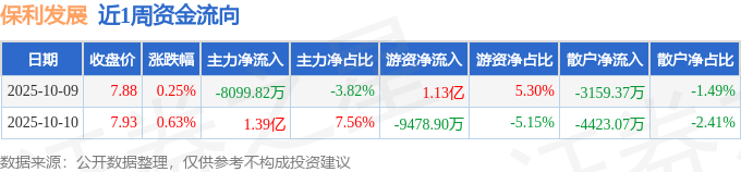 资金流向数据方面,本周保利发展主力资金合计净流入5802.15万元,游资资金合计净流入1780.29万元,散户资金合计净流出7582.44万元。本周资金流向一览见下表: