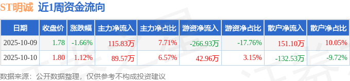 资金流向数据方面,本周ST明诚主力资金合计净流入205.4万元,游资资金合计净流出223.97万元,散户资金合计净流入18.57万元。本周资金流向一览见下表: