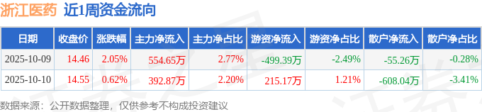 资金流向数据方面,本周浙江医药主力资金合计净流入947.52万元,游资资金合计净流出284.22万元,散户资金合计净流出663.3万元。本周资金流向一览见下表: