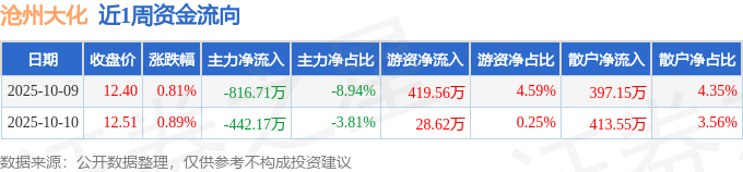 资金流向数据方面,本周沧州大化主力资金合计净流出1258.88万元,游资资金合计净流入448.18万元,散户资金合计净流入810.7万元。本周资金流向一览见下表: