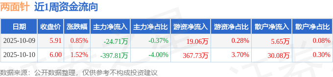资金流向数据方面,本周两面针主力资金合计净流出422.52万元,游资资金合计净流入386.79万元,散户资金合计净流入35.73万元。本周资金流向一览见下表: