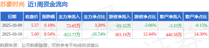 资金流向数据方面,本周苏豪时尚主力资金合计净流出751.12万元,游资资金合计净流入313.87万元,散户资金合计净流入437.26万元。本周资金流向一览见下表: