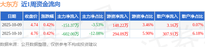 资金流向数据方面,本周大东方主力资金合计净流出753.37万元,游资资金合计净流入442.31万元,散户资金合计净流入311.06万元。本周资金流向一览见下表: