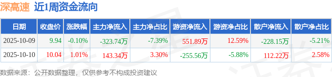 资金流向数据方面,本周深高速主力资金合计净流出180.4万元,游资资金合计净流入296.33万元,散户资金合计净流出115.93万元。本周资金流向一览见下表: