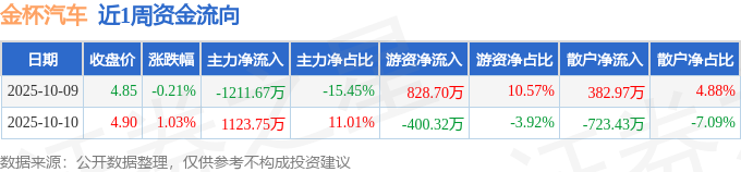 沪深股通持股方面,截止2025年10月10日收盘,金杯汽车沪股通持股数为830.54万股,占流通股比为63.0%。