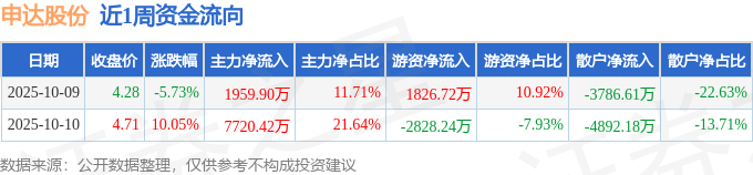 资金流向数据方面,本周申达股份主力资金合计净流入9680.32万元,游资资金合计净流出1001.52万元,散户资金合计净流出8678.8万元。本周资金流向一览见下表: