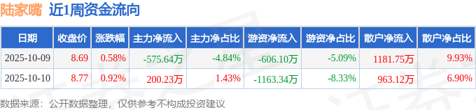 资金流向数据方面,本周陆家嘴主力资金合计净流出375.42万元,游资资金合计净流出1769.45万元,散户资金合计净流入2144.86万元。本周资金流向一览见下表: