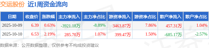 资金流向数据方面,本周交运股份主力资金合计净流出3635.48万元,游资资金合计净流入3863.34万元,散户资金合计净流出227.86万元。本周资金流向一览见下表: