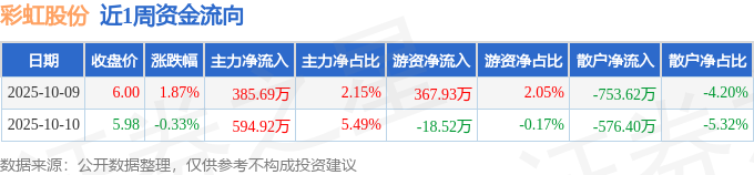 资金流向数据方面,本周彩虹股份主力资金合计净流入980.61万元,游资资金合计净流入349.41万元,散户资金合计净流出1330.02万元。本周资金流向一览见下表: