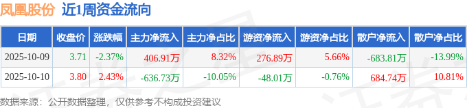 资金流向数据方面,本周凤凰股份主力资金合计净流出229.82万元,游资资金合计净流入228.89万元,散户资金合计净流入0.93万元。本周资金流向一览见下表: