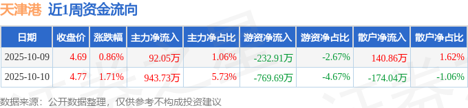 沪深股通持股方面,截止2025年10月10日收盘,天津港沪股通持股数为7338.68万股,占流通股比为254.0%。
