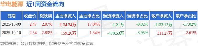 沪深股通持股方面,截止2025年10月10日收盘,华电能源沪股通持股数为411.91万股,占流通股比为15.0%。
