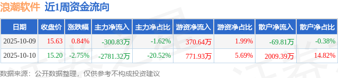 资金流向数据方面,本周浪潮软件主力资金合计净流出3082.15万元,游资资金合计净流入1142.57万元,散户资金合计净流入1939.58万元。本周资金流向一览见下表: