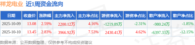 资金流向数据方面,本周祥龙电业主力资金合计净流入6167.05万元,游资资金合计净流入1210.52万元,散户资金合计净流出7377.56万元。本周资金流向一览见下表: