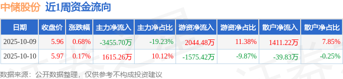资金流向数据方面,本周中储股份主力资金合计净流出1840.44万元,游资资金合计净流入469.06万元,散户资金合计净流入1371.38万元。本周资金流向一览见下表: