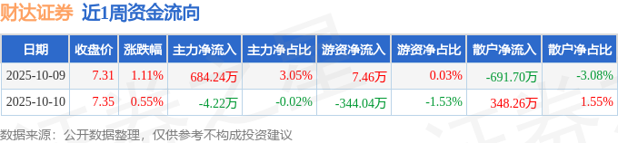 资金流向数据方面,本周财达证券主力资金合计净流入680.02万元,游资资金合计净流出336.58万元,散户资金合计净流出343.44万元。本周资金流向一览见下表: