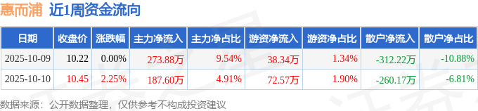 资金流向数据方面,本周惠而浦主力资金合计净流入461.48万元,游资资金合计净流入110.9万元,散户资金合计净流出572.39万元。本周资金流向一览见下表: