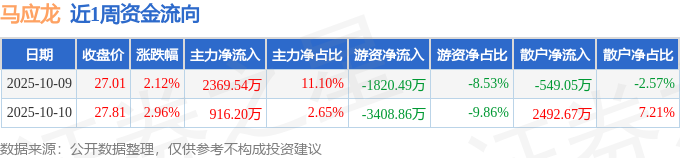 资金流向数据方面,本周马应龙主力资金合计净流入3285.73万元,游资资金合计净流出5229.35万元,散户资金合计净流入1943.62万元。本周资金流向一览见下表: