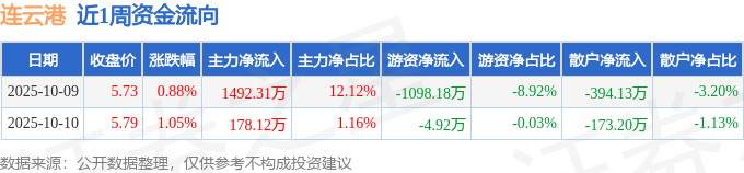 沪深股通持股方面,截止2025年10月10日收盘,连云港沪股通持股数为707.57万股,占流通股比为57.0%。