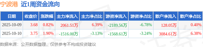 资金流向数据方面,本周宁波港主力资金合计净流入545.51万元,游资资金合计净流出3758.17万元,散户资金合计净流入3212.66万元。本周资金流向一览见下表: