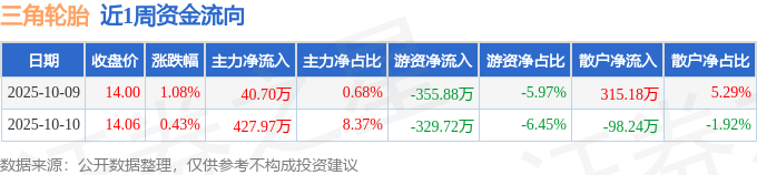 资金流向数据方面,本周三角轮胎主力资金合计净流入468.66万元,游资资金合计净流出685.6万元,散户资金合计净流入216.94万元。本周资金流向一览见下表: