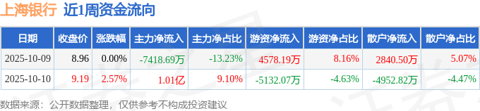 沪深股通持股方面,截止2025年10月10日收盘,上海银行沪股通持股数为5.11亿股,占流通股比为369.0%。