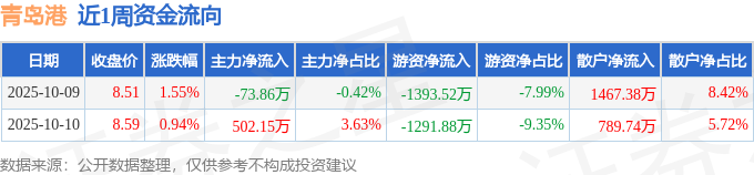 沪深股通持股方面,截止2025年10月10日收盘,青岛港沪股通持股数为1708.35万股,占流通股比为32.0%。
