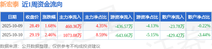 资金流向数据方面,本周新宏泰主力资金合计净流入1533.44万元,游资资金合计净流出1080.23万元,散户资金合计净流出453.21万元。本周资金流向一览见下表: