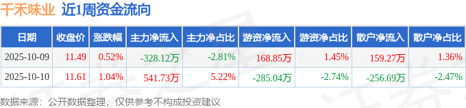 资金流向数据方面,本周千禾味业主力资金合计净流入213.61万元,游资资金合计净流出116.19万元,散户资金合计净流出97.42万元。本周资金流向一览见下表: