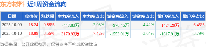 资金流向数据方面,本周东方材料主力资金合计净流入2723.1万元,游资资金合计净流出2529.47万元,散户资金合计净流出193.63万元。本周资金流向一览见下表: