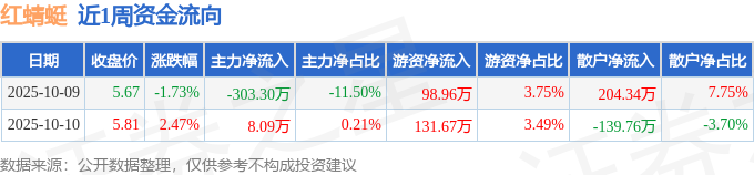 资金流向数据方面,本周红蜻蜓主力资金合计净流出295.22万元,游资资金合计净流入230.63万元,散户资金合计净流入64.58万元。本周资金流向一览见下表: