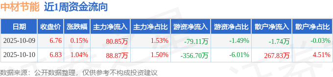 资金流向数据方面,本周中材节能主力资金合计净流入169.71万元,游资资金合计净流出435.8万元,散户资金合计净流入266.09万元。本周资金流向一览见下表: