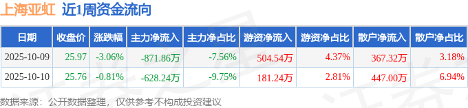 资金流向数据方面,本周上海亚虹主力资金合计净流出1500.1万元,游资资金合计净流入685.78万元,散户资金合计净流入814.32万元。本周资金流向一览见下表: