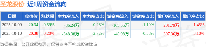 资金流向数据方面,本周圣龙股份主力资金合计净流出384.62万元,游资资金合计净流出214.53万元,散户资金合计净流入599.15万元。本周资金流向一览见下表: