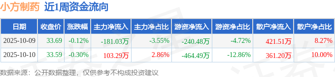 资金流向数据方面,本周小方制药主力资金合计净流出77.74万元,游资资金合计净流出704.98万元,散户资金合计净流入782.72万元。本周资金流向一览见下表: