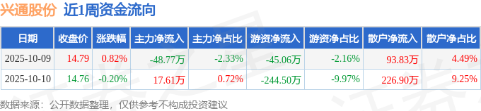 沪深股通持股方面,截止2025年10月10日收盘,兴通股份沪股通持股数为120.23万股,占流通股比为66.0%。