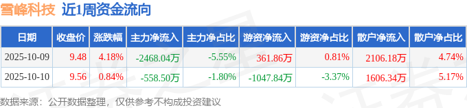 资金流向数据方面,本周雪峰科技主力资金合计净流出3026.54万元,游资资金合计净流出685.97万元,散户资金合计净流入3712.52万元。本周资金流向一览见下表: