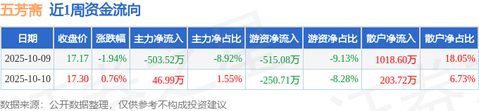 资金流向数据方面,本周五芳斋主力资金合计净流出456.53万元,游资资金合计净流出765.79万元,散户资金合计净流入1222.32万元。本周资金流向一览见下表: