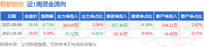 资金流向数据方面,本周银都股份主力资金合计净流入186.67万元,游资资金合计净流出394.97万元,散户资金合计净流入208.3万元。本周资金流向一览见下表: