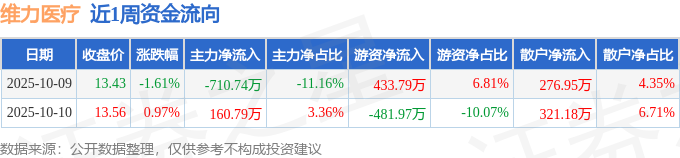 资金流向数据方面,本周维力医疗主力资金合计净流出549.95万元,游资资金合计净流出48.18万元,散户资金合计净流入598.13万元。本周资金流向一览见下表: