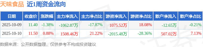 沪深股通持股方面,截止2025年10月10日收盘,天味食品沪股通持股数为665.97万股,占流通股比为63.0%。