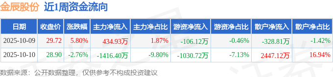 资金流向数据方面,本周金辰股份主力资金合计净流出981.47万元,游资资金合计净流出1136.84万元,散户资金合计净流入2118.3万元。本周资金流向一览见下表: