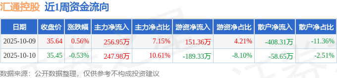 资金流向数据方面,本周汇通控股主力资金合计净流入504.92万元,游资资金合计净流出37.97万元,散户资金合计净流出466.95万元。本周资金流向一览见下表: