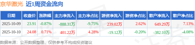 资金流向数据方面,本周京华激光主力资金合计净流出487.09万元,游资资金合计净流入219.9万元,散户资金合计净流入267.19万元。本周资金流向一览见下表: