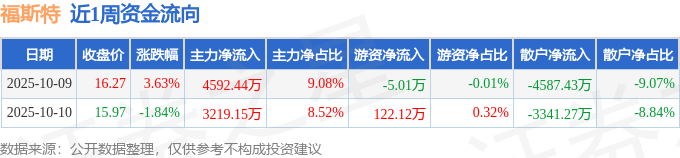 沪深股通持股方面,截止2025年10月10日收盘,福斯特沪股通持股数为1.09亿股,占流通股比为417.0%。