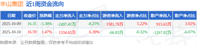 资金流向数据方面,本周丰山集团主力资金合计净流出1162.75万元,游资资金合计净流入1514.95万元,散户资金合计净流出352.2万元。本周资金流向一览见下表:
