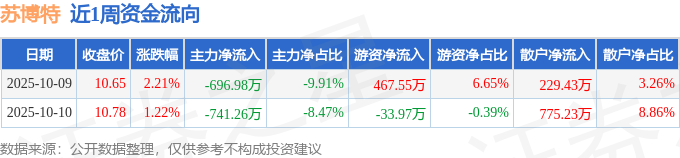 资金流向数据方面,本周苏博特主力资金合计净流出1438.24万元,游资资金合计净流入433.58万元,散户资金合计净流入1004.66万元。本周资金流向一览见下表: