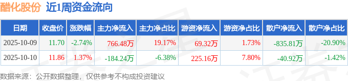 资金流向数据方面,本周醋化股份主力资金合计净流入582.25万元,游资资金合计净流入294.48万元,散户资金合计净流出876.73万元。本周资金流向一览见下表: